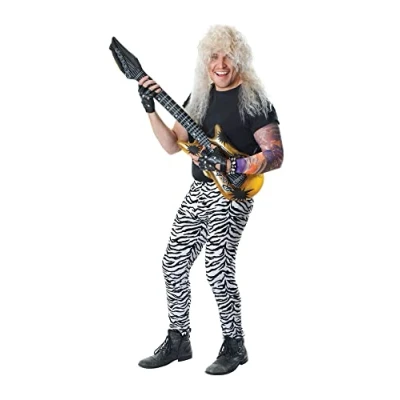 Zebra Print Trousers. Men's One size fits most Outfit Includes Trousers The Perfect Rock Accessory Wig, Gloves, Tattoo Sleeve, Wristband, Inflatable Guitar and Shoes Not Included Ideal Dress Up for Themed Parties, Halloween and World Book Day, Manufacturer: Bristol Novelty