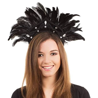 STUNNING DESIGN: Get ready to turn heads with this incredibly captivating adult black feather carnival headdress (1 pc.), complete with lace trim detail coated in dazzling rhinestones and gemstones, and attached feathers that create an elegant look. PREMIUM QUALITY MATERIAL: Crafted with high-quality materials that ensure long-lasting durability, comfort, and style, allowing you to look and feel fabulous throughout any event. UNPARALLELED COMFORT: With its adjustable fit and lightweight design, our feather headdress provides long-lasting comfort, allowing you to fully immerse yourself in the festivities without needing to worry about your headwear. VERSATILE & FASHIONABLE ACCESSORY: This exquisite headdress is perfect for various occasions like Mardi Gras celebrations, costume parties, festivals, and special events where you want to make a fashion statement. MAKE A STATEMENT: Elevate your costume to new heights with our eye-catching headdress, and effortlessly become the center of attention at any gathering or event., Manufacturer: Bristol Novelty