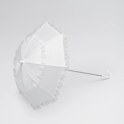Dance Direct* Beautiful White Long Handle Lace Trim Parasol, measuring 75cm in length. * This product is not available for customers outside of the EU to purchase online. Carriage charges at cost are applicable. Please contact our Customer Services Team on +44 (0) 1626 36 32 32 or email [email protected] to discuss your requirements.Product Warnings:Warning: Not suitable for childrenWarning: Keep away from fire