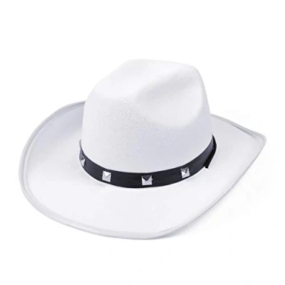 WHITE ELEGANCE: Stand out in the crowd with our stunning white felt studded cowboy hat (1 pc.), designed to add an elegant and unique touch to your outfit, perfect for parties, music festivals, rodeos, and more. HIGH-QUALITY MATERIAL: Expertly crafted from top-notch felt material, our cowboy hat offers ultimate comfort and durability, ensuring it stays in great condition for continued use and enjoyment. EASY STYLING & MAINTENANCE: Effortlessly transform your look with this versatile accessory, whether you're dressing up for a special occasion or rocking a casual outfit, our hat will instantly elevate your style. WIDE RANGE OF USES: From themed parties to concerts and outdoor events, our white felt studded cowboy hat is the go-to accessory for making a striking impression and showcasing your fashion-forward sensibility. A MUST-HAVE ACCESSORY: Don't miss out on the chance to own this fashionable and eye-catching cowboy hat, it's time to enhance your wardrobe and make a bold statement that will turn heads wherever you go., Manufacturer: Bristol Novelty