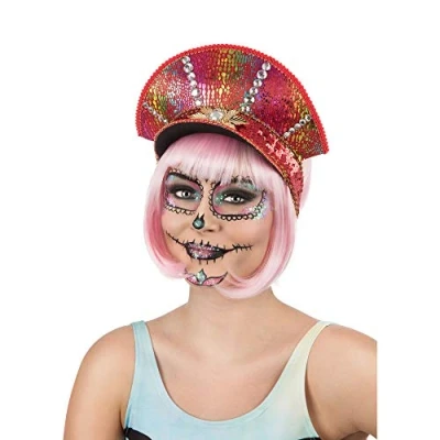 CHIC MILITARY FESTIVAL HAT: Stand out from the crowd with this stylish pink military festival party hat, featuring a unique military festival design in pink color with red lace and sequin lining, accented by dazzling crystal stones. PREMIUM MATERIAL: Made from high-quality materials, this hat is not only fashionable but durable as well, promising a long-lasting accessory that you can enjoy at multiple events. EASY TO COORDINATE: Our pink military festival party hat pairs well with a wide range of outfits and accessories, allowing you to effortlessly create a fun and trendy look for any occasion. PERFECT ACCESSORY FOR VARIOUS EVENTS: This versatile hat is a must-have addition to your wardrobe, making it the perfect accessory for concerts, raves, themed parties, costume events, and more. ELEVATE YOUR FESTIVAL EXPERIENCE: Take your festival fashion to the next level with this pink military festival party hat, designed to give you a trendy and memorable look., Manufacturer: Rubies