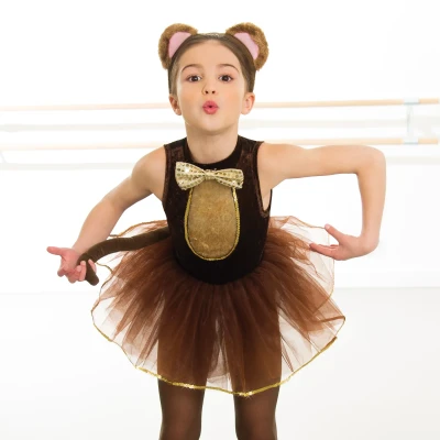 * Monkey Kit. Ears and Tail. team up with our basic Q33A Brown Leotard and AD123-BR Brown Opaque Tights and you've got your jungle monkey! * Soft monkey ears on a brown headband and monkey tail with loop to attach to backProduct Warnings:Warning: Not suitable for children under 36 monthsWarning: Small parts. Choking hazard. Adult supervision recommendedWarning: Keep away from fireWarning: Dancewear/Costume designed for training, exam or stage use only
