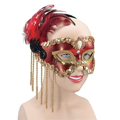 Red Satin Eye Mask with Feathers on Headband Includes Eye Mask on Headband One Size The Perfect Accessory for a Masked Ball or Carnival Bristol Novelty Reference EM202, Manufacturer: Bristol Novelty