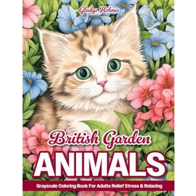 British Garden Animals: Colouring Books For Adults Grayscale Illustrations With World Of Creatures, Butterflies, Bird, Cat, Dog, And More!