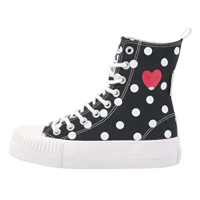 British Knights Women's Kaya High Sneaker, Black Polka Dot Heart, 5 UK
