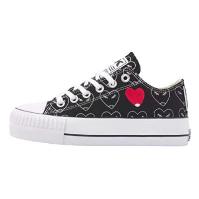 British Knights Women's Kaya Low Sneaker, Black and White Heart Heart, 5 UK
