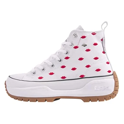 British Knights Women's Kaya Mid Fly Sneaker, White red Lips, 5 UK