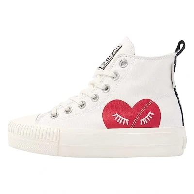British Knights Women's Kaya Mid Sneaker, Creamy White red Heart Cream White, 3.5 UK