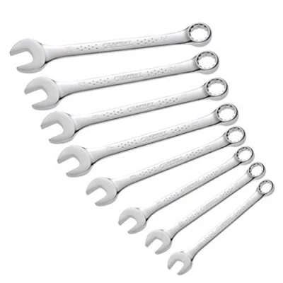 General description The Britool BRIE110300B is an 8 piece combination spanner set designed for durability and efficiency. This set includes spanners in the following sizes: 8, 10, 11, 13, 17, 19, 22, and 24mm. The spanners are forged from chrome vanadium steel and feature a high chrome finish for enhanced longevity. Technical specifications Material: Chrome vanadium steel Finish: High chrome Sizes included: 8mm, 10mm, 11mm, 13mm, 17mm, 19mm, 22mm, 24mm Ring spanner end: 12-point OGV® profile angled at 15° Open end angle: 15° from the handle axis Standards: ISO691, ISO 1711-1, ISO 3318, ISO 7738, DIN 3313