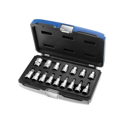 General description The Expert E032907 Socket Set includes a comprehensive 16-piece TORX bit and socket collection, designed for 1/2in drive applications. This set is housed in a durable case with metal clasps, which can be transformed into a modular storage system suitable for roller cabinets. Technical specifications Number of pieces: 16 Drive size: 1/2in TORX Bits: T20, T25, T27, T30, T40, T45, T50, T55, T60 (9 pieces) TORX Sockets: E10, E12, E14, E16, E18, E20, E24 (7 pieces) Manufacturer Part Number (MPN): BRIE032907B EAN: 3258950329079 Other information