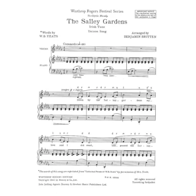 Britten The Salley Gardens for Choir Unison & Piano