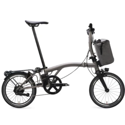 A compact titanium e-bike built for smooth, efficient urban travel. With Brompton’s e-Motiq system, SuperRoll+ portability, and quality components, it brings real-world performance to every ride.Key Features:Grade 9 titanium frame, TIG-welded with cast titanium bottom bracketBrompton fork for precision handling and low weightRigid rear triangle for direct, responsive power transferBrompton 4-speed drivetrain with 6061 alloy crankset (50T)Brompton Dual Pivot Caliper brakes, front and rear16" double-wall rims with Continental Contact Urban tyresSuperRoll+ roller frame for smooth, stable folded transportAvailable with 0% APR financeDrive Information:Motor: Custom e-Motiq rear-hub motor, 40 Nm max torqueBattery: 345 Wh Greenway unit – up to 90 km range (5hour full charge)User Interface: Brompton Handlebar Control Screen and remote switchEven lighter. Even smoother. The Brompton Electric T Line 4 Speed redefines what a folding e-bike can be. Built around a hand-crafted grade 9 titanium frame with a cast bottom-bracket shell, it combines strength and agility with the unmistakable feel of premium titanium. Every weld and component is engineered for durability, low weight, and effortless ride quality — perfect for riders who want expert performance in a truly portable package.At its heart is the new e-Motiq system — a finely tuned rear-hub motor and control unit that delivers natural, quiet assistance as you pedal. Over your first 100 km, it learns your riding style and refines its power delivery, offering personalised range predictions and intuitive responsiveness on every ride. With up to 90 km of range from the 345 Wh battery, it’s ideal for commutes, weekend spins, or multi-modal travel.The SuperRoll+ system transforms the folded bike into a smooth-rolling companion. Four wheels on the base and an optimised centre of gravity make it easy to glide through stations, pavements, or concourses — all without lifting. Raise the seatpost for “Shopper Mode” or lower it for “Suitcase Mode” and simply roll away.Quality components back up the Brompton reputation: Dual Pivot Caliper brakes for controlled stopping, 16″ double-wall rims with Continental Contact Urban tyres for dependable grip and comfort, and a 4-speed drivetrain tuned for mixed terrain and stop-start city riding. The Superlight carbon saddle and quick-release pedals add refinement and practicality in equal measure.Compact, clever, and a joy to ride — the Brompton Electric T Line 4 Speed is the perfect partner for riders who want electric assistance without compromise. From doorstep to desk, train to trail, it brings the freedom of cycling to every part of your day.