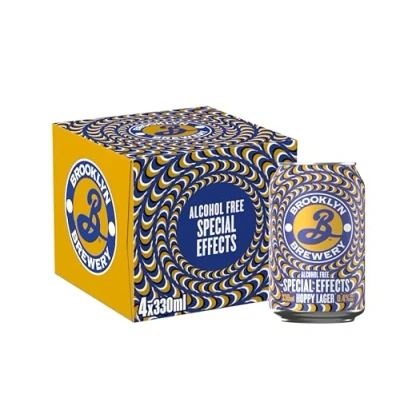 ABOUT BROOKLYN SPECIAL EFFECTS: This is a low alcohol hoppy lager with an unexpected piney aroma and pleasantly bitter finish. All the same satisfaction, with no alcohol! With Brooklyn Special Effects, we’re making you taste something incredible: a delicious, low alcohol beer. A ‘Great Taste 2023’ award winning one, too! MADE FROM NATURAL INGREDIENTS: Brooklyn Special Effects is a 0.4% ABV lager, with a balance of pine aroma, peeled grapefruits, and fresh zesty aromas. TASTING NOTES: Brooklyn Special Effects is a hoppy, amber lager that gets its bready sweetness from a blend of pale caramel and dark, roasted Munich malts. And its surprising nose from dry-hopping with Mosaic, Citra and Amarillo hops – a technique rarely used in alcohol free brewing. GREAT FOOD PAIRING: Our low alcohol beer is great to drink alone or with food. The refreshing lager matches well with burgers, chili dogs, bold cheese and hot sauces. Brooklyn Special effects is also a great accompaniment to spicy curry dishes as the light citrus hop aroma and bitterness balance out the spice perfectly. FOR ANY OCCASION: As an easy to drink and great tasting low alcohol beer, Brooklyn Special Effects is as great to drink everyday as it is for occasions such as the summer gatherings, family celebrations, holidays, festivals, BBQs and Christmas or Easter celebrations.
