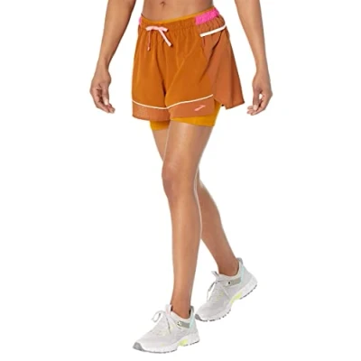 BROOKS 221611290 High Point 3" 2 in 1 Short Shorts Women's Hazelwood/Ochre/Fuchsia Size 25