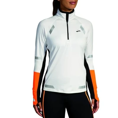 BROOKS 221686167 Run Visible 1/2 Zip 2.0 Sweatshirt Women's Ecru/Fluoro Flash/Black Size 25