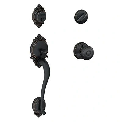 Use with 1-5/8 in. to 1-3/4 in. door Adjustable throughbolt can move up and down 1-1/2 in. to fit a variety of pre-existing holes Self-aligning screw holes make installation easy and hassle-free Knob design pairs well with traditional styles and crown molding while finish pairs well with natural tones and handmade items, Manufacturer: Schlage Lock Company