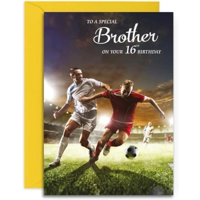 Brother 16th Football Birthday Card Medium Sized (A5 Size 148mm x 210mm) with Envelope