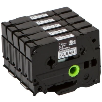 Brother HGE231V5 Black on White 12mm 8M x High Grade Tape 5 pack