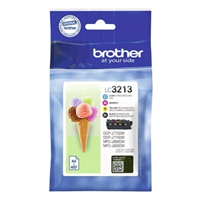 Black cartridge prints 400 pages and cyan, magenta and yellow each print 400 pages in accordance with ISO/IEC 24711 High quality genuine Brother LC3213VALBP ink cartridge multipack Genuine Brother ink cartridges are rigorously tested to print perfectly every time saving you time and money Using Brother LC3213 original ink cartridges protects your printer warranty More economical than single pack purchases, reducing your cost per page