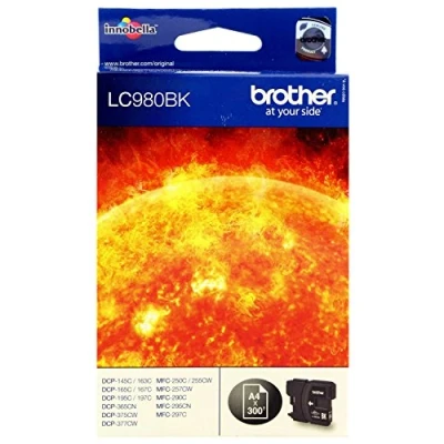 LC980BK Prints 300 pages in accordance with ISO/IEC 24711 High quality genuine Brother black ink cartridge Genuine Brother ink cartridges are rigorously tested to print perfectly every time saving you time and money Using this Brother LC980BK original ink cartridge protects your printer warranty The LC980 range of ink cartridges are available as a more economical value pack, reducing your cost per page - LC980VALBP