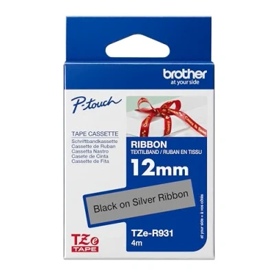 RIBBON - black text on a silver background, 12mm in width and 4 metres long USES - Work your magic by adding a personalised touch to gifts, cards and crafts, with genuine Brother ribbon tape FEATURES - A luxury shiny finish to this non-adhesive fabric ribbon VARIETY - Over 60 colour and size variations on offer, there’s a solution for every task. COMPATIBILITY - Compatible with P-touch label printers that show the TZ or TZe logo on the tape cassette cover.