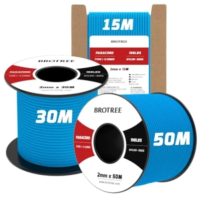 ✅【100% Nylon】The paracord 2mm has a 3 strands inner core and a 16 strands compact outer sheath design, each inner strand is braided with 3 twisted nylon fibers. Made of 100% nylon, this tactical cord can support up to 90kg (198lbs) of weight. ✅【Exceptional Performance】This nylon rope is resistant to UV, mildew, corrosion, fading, abrasion and common chemicals, so it can maintain stable performance in extreme temperature conditions. Unlike other cheap paracord, nylon rope does not emit an unpleasant odour. ✅【Diverse Options】The 30/50m paracord comes on a spool that is designed for ease of portability, storage and to avoid tangling. The cord is available in different colors and can be paired with different styles for various outdoor and handmade activities. ✅【Easy Cutting & Usage】The length can be easily adjusted as needed and it is recommended that a high temperature blade is used or the tape is wrapped before cutting. Seal the edge by burning this parachute cord with a lighter and pressing it for a smooth, flat finish to prevent a loose end. ✅【Versatile Applications】Flexible and easy to knot, the utility rope is widely used for camping, fishing, survival, crafting, hiking. It also serves well for making paracord projects like bracelets, dog collar, wrapping hatchets, knives and more. NOT FOR CLIMBING USE!