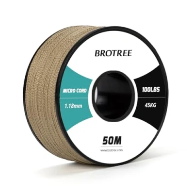 ✅【Excellent Material】This 1.18mm micro cord is specially constructed from a 8 strands durable polyester outer sheath with no inner core. The advanced weaving technique ensures exceptional tensile strength, supporting weights up to 45kg (100lbs) without stretching or fraying. ✅【Exceptional Performance】This braided rope is resistant to UV, mildew, corrosion, fading, abrasion and common chemicals, so it can maintain stable performance in extreme temperature conditions. Unlike other cheap rope, this utility rope does not emit an unpleasant odour. ✅【Diverse Options】The 50m cord comes on a spool that is designed for ease of portability, storage and to avoid tangling. The cord is available in different colors and can be paired with different styles for various outdoor and handmade activities. ✅【Easy Cutting & Usage】The length can be easily adjusted as needed and it is recommended that a high temperature blade is used or the tape is wrapped before cutting. Seal the edge by burning this rope with a lighter and pressing it for a smooth, flat finish to prevent a loose end. ✅【Versatile Applications】Beyond survival and outdoor uses, its flexible texture and vibrant colors make this versatile cord perfect for intricate DIY projects like woven bracelets, keychains, dog collars, jewelry making and decorative knots. NOT FOR CLIMBING USE!