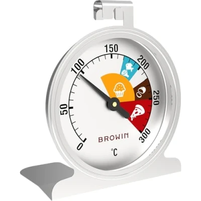 Browin 100502 Oven Thermometer 0C + 300C, Analogue Thermometer, Safe, Clear Measuring Scale, Glass, Stainless Steel