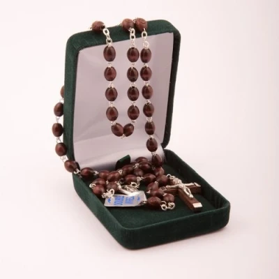 Beautifully made pair of Rosary Beads Smooth brown wood beads. 45 cms in length Extra strong 'double wiring' between each bead. Supplied in presentation case. Hand made in Italy.194/6.