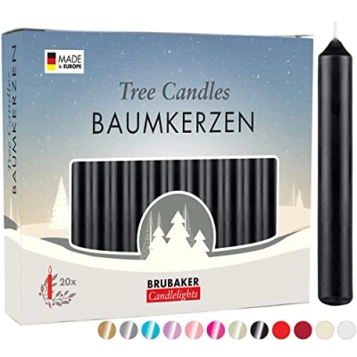 BRUBAKER 20 Pack Tree Candles Wax Christmas Pyramid Black