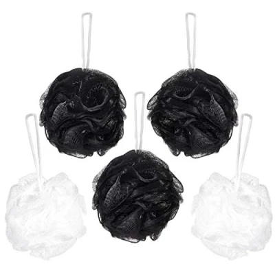 BRUBAKER Cosmetics Premium Bath & Shower Sponge Exfoliating Body Pouf with String for Hanging 5 Pack Black/White