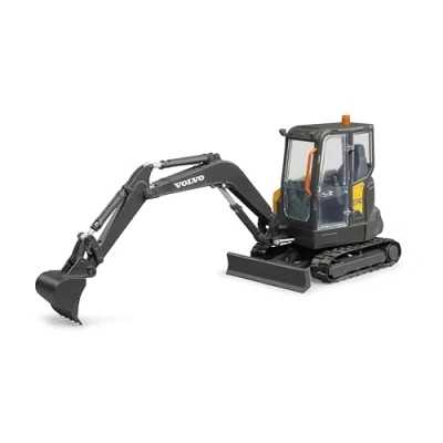 The small rotation radius and the excavator body that rotates 360° allow you to work precisely in tight spaces, ideal for construction sites in the kids room or sandpit The angled arm extends the range and allows you to dig flexibly and work in hard-to-reach areas Provides a secure grip and good maneuverability on uneven or loose surfaces, even outdoors. It can be height adjusted, lowered, tilted and locked for leveling work or for extra stability during digging Glazed window with opening door for realistic gaming fun and authentic operating environment, Manufacturer: bruder