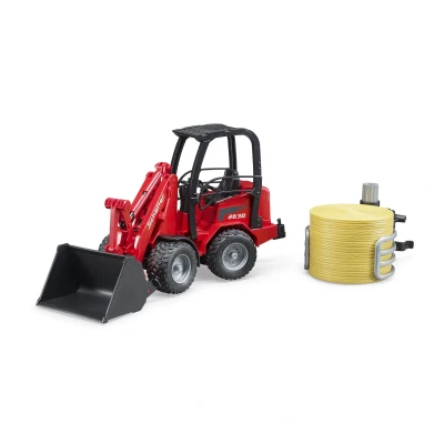 Bruder Schäffer 2630 with Bale Grabber and 1 Round Bale 1:16 For over 50 years, Schäffer has been developing wheel loaders for agriculture, as well as for garden and landscaping. The 2000 compact class is one of Schäffer's most successful series. The premise for this loader is to offer maximum performance in tight spaces. This essential and versatile vehicle for any successful farm is now available in 1:16 scale, combined with a bale grabber, newly released by BRUDER. For maximum manoeuvrability, the vehicle, like the original, features a functional articulated steering system. Both the loading arm and bucket operate just like the full-sized model. A sturdy roll bar is included for the safety of the bworld figure, which can comfortably sit in the driver's seat. The new bale grabber is an extremely useful tool for transporting and distributing straw and hay. It helps young farmers to transport and unload the included round bale into the barn. The grabber opens and closes by simply turning the top adjustment wheel. Cabin * Roll bar Vehicle Structure * Removable rear hitch * Loading arm upgradeable with accessories * Tilting and removable front bucket General Information * Recommended age: 4 years and up, suitable for indoor and outdoor play * Made from high-quality plastics such as ABS * Compatible with figures * Scale 1:16 Warning: Not suitable for children under 36 months due to small parts which may present a choking hazard!
