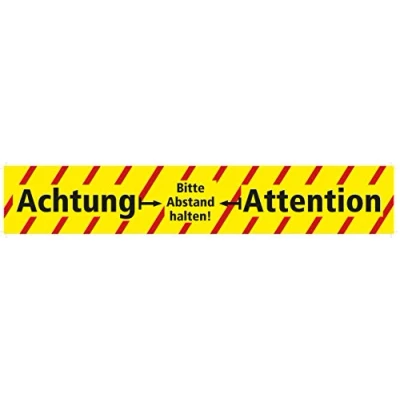 4 x floor stickers with sand embossed surface: please keep distance. Attention. Self-adhesive backing Can be removed without leaving residue Please keep the distance - Attention Size: 43 x 7 cm, Manufacturer: Brüder Mannesmann