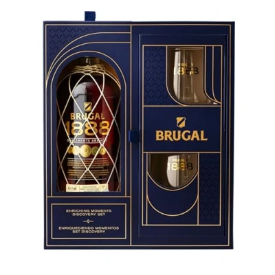 The Brugal 1888 Rum Enriching Moments Discovery Set has equipment and recipies to enjoy 1888 through recreating classic key serves. Master classic cocktail serves at home, turning every serve into a moment of discovery. Complete with two glasses, the Enriching Moments Discovery Set is the perfect gift for sharing, exploring the wonders of Brugal 1888 and enjoying shared moments of togetherness. Carefully crafted with over 130 years rum-making expertise, Brugal 1888 is made in the warmth of Dominican Republic by Brugal’s 5th generation Maestros Roneros. Every sip of Brugal 1888 invites you in with notes of vanilla, red fruits and toffee intertwined with cocoa and natural oak spice. A wonderfully inviting spirit that is smooth, full of flavour and perfectly balanced Reimagine any classic stirred cocktails with the exceptional taste of Brugal 1888. Discover a Rum Negroni or Old-fashioned with a richer, fuller flavour, or enjoy neat to reveal a spirit with a warm embrace that stimulates the senses and evolves in the glass Share the gift of an exceptional hand-sealed and finished double-aged rum Please enjoy responsibly
