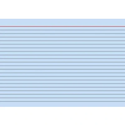 100 lined index cards, A5, in blue Made of high-quality cardboard With red top line and grey horizontal lines 6 mm line spacing
