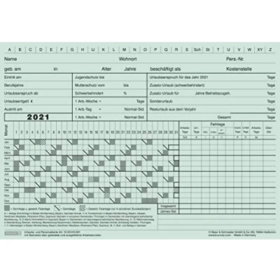 With year-bound A5 landscape calendar. Front cover holiday print, annual calendar with identification of Saturdays, Sundays and holidays, recording of work, holidays, sick and missed days. Back with personnel details form: person, training, activity, health, spouse, children A5 landscape · 100 pieces · cardboard · orange