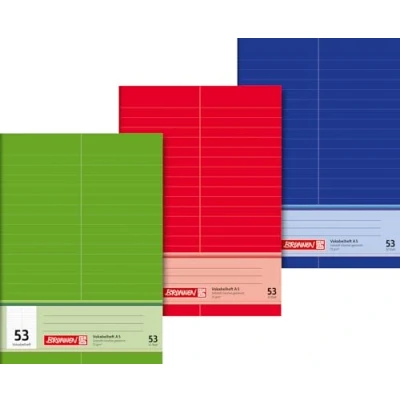 Brunnen vocabulary book DIN A5, 32 sheets, 1 item 70 gsm writing paper. Type 53 lined, with dividing line Colour cannot be chosen (colours available - green, red and blue) With labelling area on the front cover