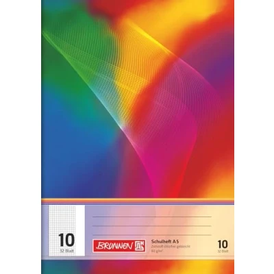 Brunnen exercise book, DIN A5, 32 pages (double book), 1 piece. 80g/m² writing paper. Line style 10, checked, with margin. With an FSC environmental seal. With large labelling area on the front; table of contents and class plan on the inside.