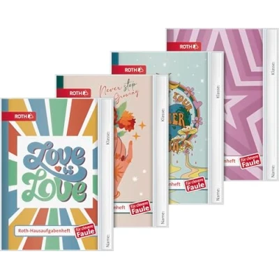 Homework Book For Clever Lazy A 5: 56 sheets Plastic cover 4 trendy designs Girls Comes with Saturday With protruding Fächer strips so you can write down the Schulstunden