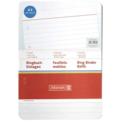 Brunnen 1066301 Ring Binder Inserts (A5, Ruled with red Head line, 50 Sheets, 70 g/m²)