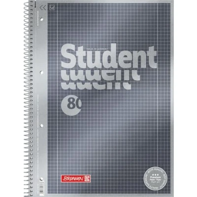 'student Premium, Made in Germany Unique design with detailed Metaillic effect print on the front cover sheet (cover colour: Metallic charcoal grey) 80 pages satin for the brilliant white 90 g/m² Premium Photo Paper with first-class writing comfort for better writing visibility A4 squared with margin line indoor and outdoor use, ruling 28 Wiro bound – book lays flat, Micro perforation, 4 hole punched, tearing aid, extra strong cardboard back