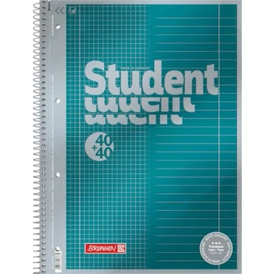 'student Premium, Made in Germany Unique design with detailed Metaillic effect print on the front cover sheet (cover colour: Metallic Petrol) 80 pages satin for the brilliant white 90 g/m² Premium Photo Paper with first-class writing comfort for better writing visibility Lined A4; 40 chequered pages (28), 40 pages ruled (type 27) respectively ruling with margin line indoor and outdoor use Wiro bound – book lays flat, Micro perforation, 4 hole punched, tearing aid, extra strong cardboard back