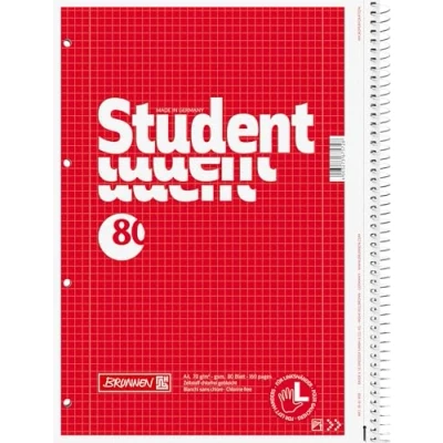 Brunnen 1067908 Notebook, Student College Block (for Left Handed People, A4, Squared, Lineament 28, 70g/m², 80 Sheets, Spiral)