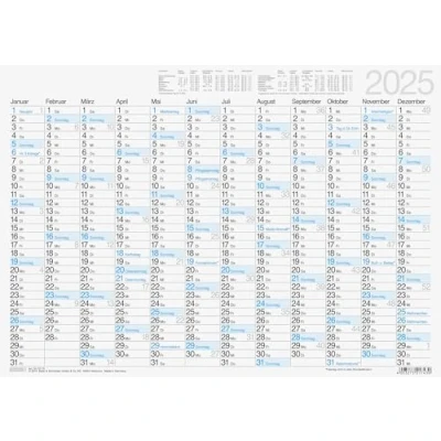 W x H: 420 x 297 mm, format: A3 landscape 1 page = 12 months, print colour: black/blue, 170 g/m² Holiday dates Germany For calendar year 2025