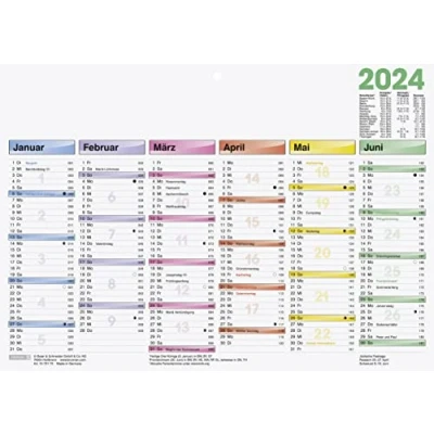 BRUNNEN DATAline 2024 Annual Calendar 1 Page = 6 Months A4 Landscape White