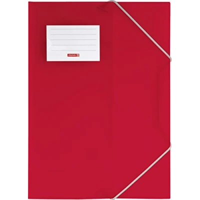 Document Wallet Fact.PP For a 4, Polypropylene Film translucent red 3 flaps, name plate Elastic strap closure