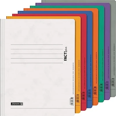 Assortment: 8 colours (blue, yellow, grey, green, orange, red, purple, white) For paper size A4 High-quality chipboard in 375 g/m², 0.4 mm thick With labelling field For official filing and commercial filing