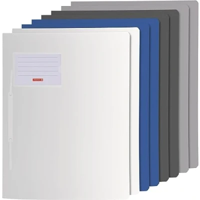 Assortment: 8 colours (2 x blue, 2 x grey, 2 x silver, 2 x white) For A4 paper size Polypropylene With filing device Inner slip pocket
