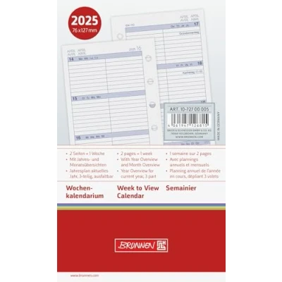 BRUNNEN Mini + Weekly Calendar (2025), 2 Pages = 1 Week, A7, 128